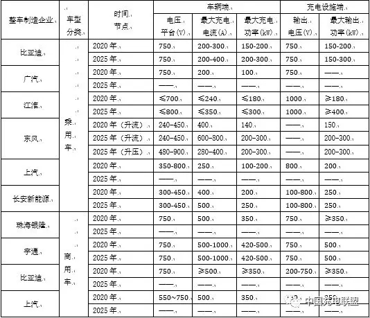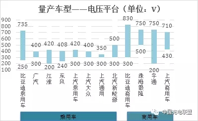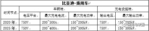 乘用車方面,電壓平臺普遍在240~500V之間,其中比亞迪計劃通過提高電壓平臺來實現(xiàn)快速充電,量產(chǎn)乘用車充電電壓最高將達(dá)到750V。