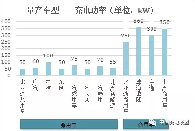 乘用車方面,充電功率普遍在0~75kW之間,其中江淮量產(chǎn)乘用車充電功率最高可達(dá)到100kW。