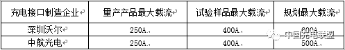 以上提到的支持大電流的充電接口還未實現(xiàn)量產(chǎn)?,F(xiàn)將信息匯總得于“表17充電接口企業(yè)所生產(chǎn)的快速充電接口性能參數(shù)表”。
