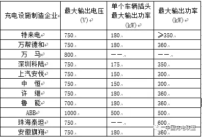 表18各充電設(shè)施制造企業(yè)快速充電產(chǎn)品信息匯總表