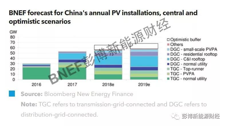 繼2017年出人意料的53GW新增裝機(jī)容量爆發(fā)之后,業(yè)內(nèi)對2018年的規(guī)模預(yù)期在40GW到65GW之間。補(bǔ)貼拖欠和宏觀流動性緊縮,都將給光伏裝機(jī)帶來下行風(fēng)險(xiǎn)。彭博新能源財(cái)經(jīng)認(rèn)為,鑒于目前的政策,第二季度和第四季度將有兩輪搶裝,“光伏扶貧”和“領(lǐng)跑者”指標(biāo)不少,屋頂裝機(jī)有望持續(xù)上升,中國的光伏新增裝機(jī)再創(chuàng)新高的可能性仍然存在。