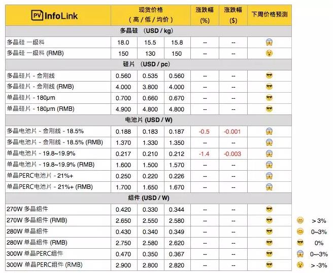 多晶硅片的價格參考PVinfoLink數(shù)據(jù),如下表。
