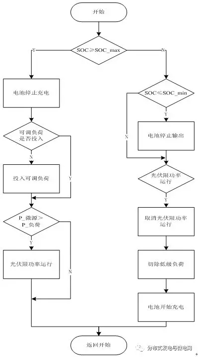 圖2孤島模式儲(chǔ)能系統(tǒng)充放電控制策略流程圖