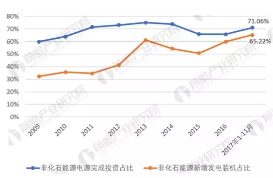 圖表4:2009-2017年非化石能源建設比重變化趨勢(單位:%)