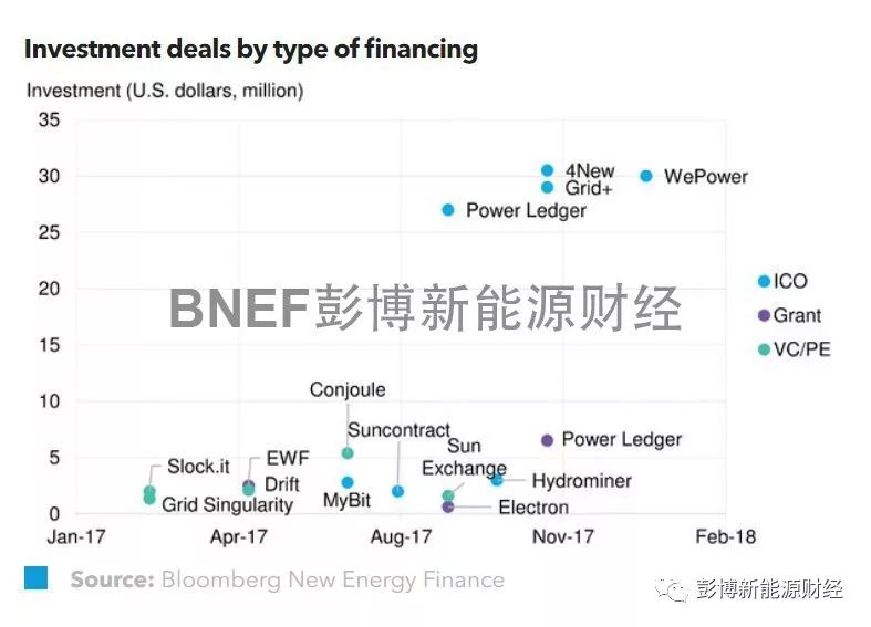 彭博新能源財(cái)經(jīng)數(shù)據(jù)顯示,2017年以來,活躍于能源領(lǐng)域的區(qū)塊鏈創(chuàng)業(yè)公司已經(jīng)獲得了總額1.43億美元的投資,其中超過85%的資金均來自數(shù)十個(gè)ICO項(xiàng)目。