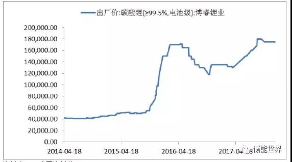 2017-2018年碳酸鋰供需仍未緊平衡狀態(tài),到2019年能夠基本實(shí)現(xiàn)供需平衡,且考慮到碳酸鋰擴(kuò)產(chǎn)不及預(yù)期的概率較其他產(chǎn)業(yè)更高,碳酸鋰景氣周期大概率持續(xù),價(jià)格有望持續(xù)較高位運(yùn)行。