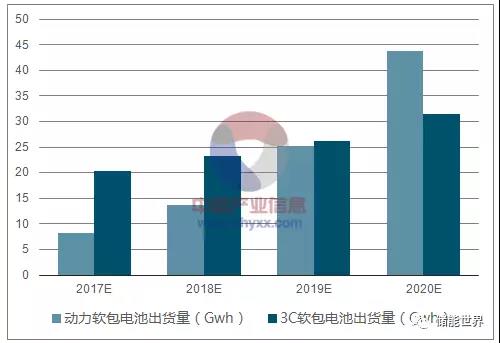 2017-2020年國內(nèi)動(dòng)力軟包電池、3C軟包電池出貨量測算