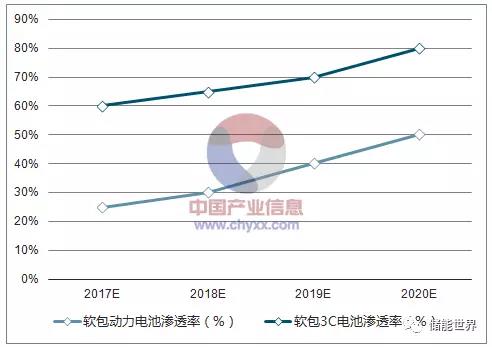 2017-2020年國內(nèi)軟包動(dòng)力電池、軟包3C電池滲透率量測算