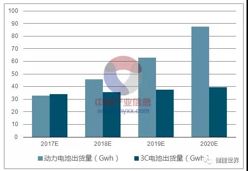 2017-2020年國內(nèi)動(dòng)力電池、3C電池出貨量測算