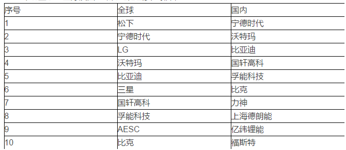 2017年前三季度全球及國內(nèi)動(dòng)力電池出貨量排名