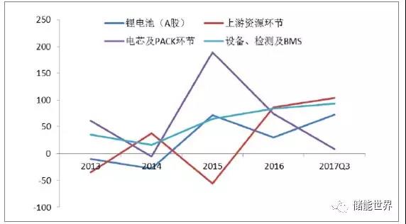 鋰電池及其相關(guān)子行業(yè)歸母凈利潤增速變化