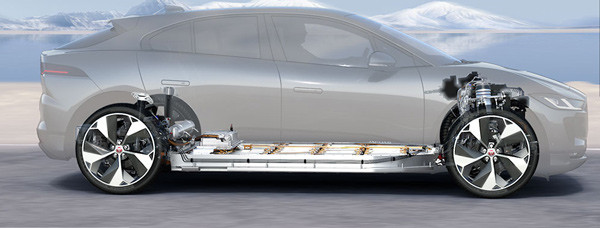 “I-PACE”由兩個(gè)分置于前后軸的永磁同步電機(jī)驅(qū)動(dòng),該電機(jī)與在捷豹電動(dòng)方程式賽車——“I?TYPE”中采用的電機(jī)類似,由JaguarDrive系統(tǒng)控制,兩個(gè)電機(jī)可提供0-12,000每分鐘轉(zhuǎn)速,并產(chǎn)生400馬力的功率和696牛米的扭矩,足以驅(qū)動(dòng)車輛在4.8秒內(nèi)完成百公里加速。