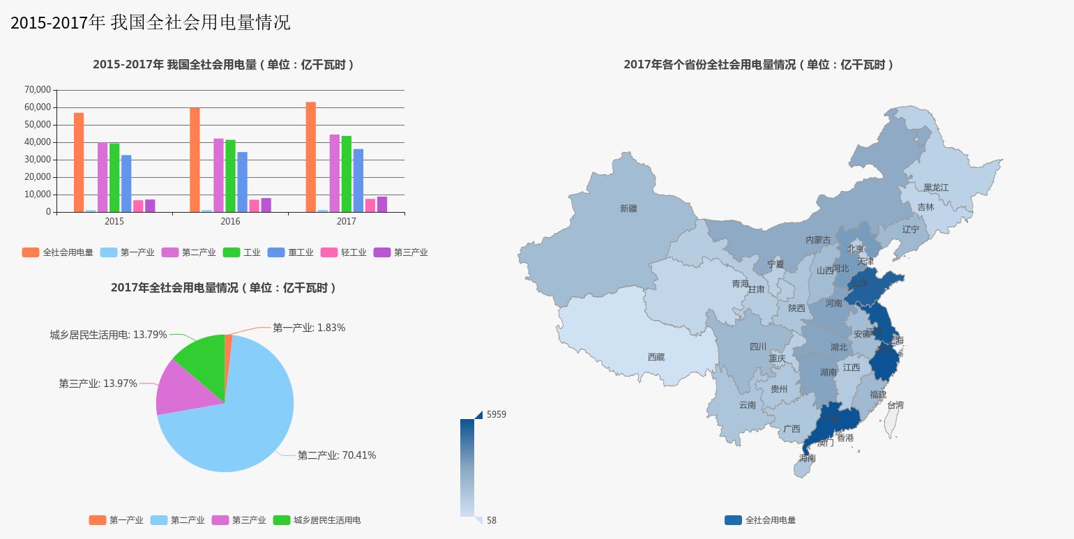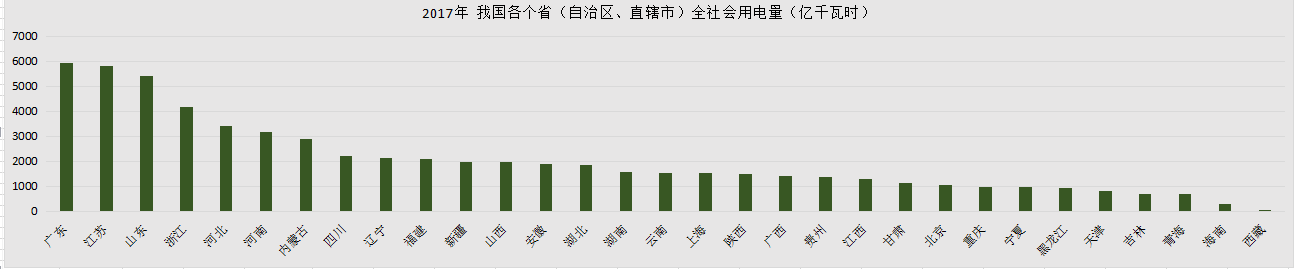 從全社會(huì)用電量總量上看,2017年,我國(guó)各個(gè)省(自治區(qū)、直轄市)全社會(huì)用電量東高西低的情況依然加劇。