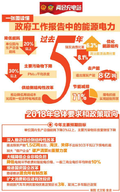 3月5日上午,李克強總理第五次向全國人民代表大會作政府工作報告。兩萬余字的2018年政府工作報告中,與能源電力相關(guān)的內(nèi)容占據(jù)兩千余字,9次提到電力行業(yè),12次提到能源領(lǐng)域。