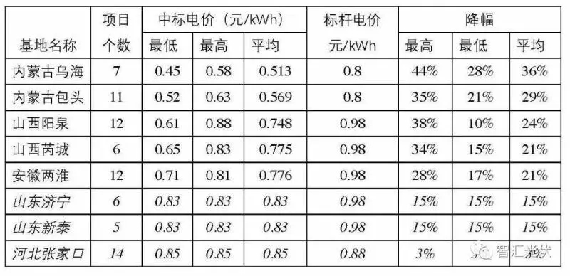 第二批領(lǐng)跑基地中標(biāo)電價(jià)回顧(來(lái)自智匯光伏)
