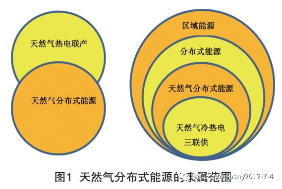天然氣冷熱電三聯(lián)供是天然氣分布式能源的最早說(shuō)法,在2011年國(guó)家指導(dǎo)意見(jiàn)出臺(tái)前被廣泛使用。天然氣冷熱電三聯(lián)供是指發(fā)電機(jī)發(fā)電余熱冷熱利用的簡(jiǎn)單系統(tǒng),屬于天然氣分布式能源的一部分,而分布式能源更包含了光能、風(fēng)能和熱泵等多種能源方式。目前,區(qū)域能源沒(méi)有明確的定義,但區(qū)域能源的主要方向之一是以分布式能源為基礎(chǔ),集合可再生能源和清潔能源的多能互補(bǔ)和能源互聯(lián)網(wǎng)。
