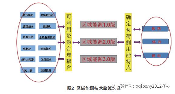 目前,以天然氣分布式能源為基礎(chǔ),耦合可再生能源和清潔能源的多能互補(bǔ)系統(tǒng)和能源互聯(lián)網(wǎng)系統(tǒng)受到廣泛關(guān)注,已經(jīng)有一批國(guó)家示范項(xiàng)目在啟動(dòng)建設(shè)。從技術(shù)層面來(lái)看,涉及到多種能源類(lèi)型和多種能源需求多樣性匹配。2017年4月,本文作者提出了3個(gè)層次的區(qū)域能源技術(shù)路線(xiàn),區(qū)域能源技術(shù)1.0版本的技術(shù)路線(xiàn)是一種能源供應(yīng)方式解決一種能源需求,區(qū)域能源技術(shù)2.0版本的技術(shù)路線(xiàn)是多種能源供應(yīng)方式解決一種能源需求,區(qū)域能源技術(shù)3.0版本的技術(shù)路線(xiàn)是多種能源供應(yīng)方式解決多種能源需求。