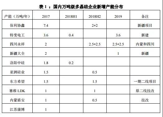 根據(jù)企業(yè)規(guī)劃統(tǒng)計,2018年國內(nèi)多晶硅產(chǎn)能將達(dá)到43.3萬噸/年,且大部分新增量都集中在三季度以后。