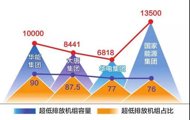 作為改造主力軍,新五大發(fā)電集團認真落實大氣污染防治要求,全力推進超低排放提速擴圍,節(jié)能環(huán)保工作實現(xiàn)質(zhì)的飛躍。其中,國家能源集團完成超低排放改造機組容量最多,為13500萬千瓦,占現(xiàn)役煤電機組容量76%。華能集團超低排放機組占比最高,超過90%,共計10000萬千瓦,超前國家進度計劃要求。大唐集團累計完成超低排放機組改造達到202臺,共計8441萬千瓦,占在役燃煤機組容量的87.5%,高出中央發(fā)電企業(yè)平均值6個百分點。華電集團累計170臺6818萬千瓦煤電機組完成改造,容量占比達到77%,東部地區(qū)煤電機組已全部實現(xiàn)超低排放。