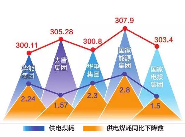 在本次對比的5家企業(yè)中,華能集團供電煤耗最低,完成300.11克/千瓦時,同比下降2.24克/千瓦時。國家能源集團供電煤耗同比降低2.8克/千瓦時,下降數(shù)量最為明顯,完成307.9克/千瓦時。華電集團供電煤耗完成300.8克/千瓦時,同比減少2.3克/千瓦時。國家電投集團供電煤耗同比下降1.5克/千瓦時,完成303.4克/千瓦時。大唐集團供電煤耗完成305.28克/千瓦時,同比降低1.57克/千瓦時。