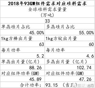 2018年93GW組件需求對(duì)應(yīng)硅料需求