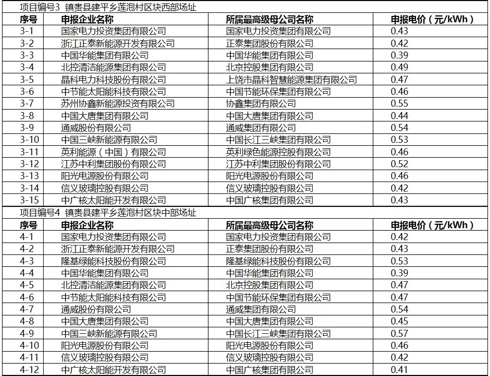 次低電價(jià)為0.41元/千瓦時(shí),投出該電價(jià)的企業(yè)為中廣核、浙江正泰!