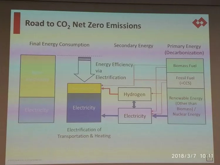 零碳路線圖。電氣化+氫能源。能效提高,使用能總量大幅減少,電氣化比重大幅提升。而能源的來(lái)源則是生物質(zhì)、帶CCS的化石能源,最大的部分則是生物質(zhì)以外的可再生能源和核能。