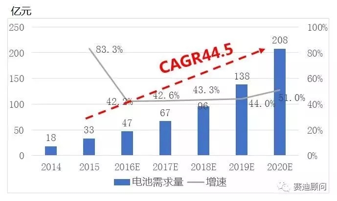 自2014年起,新能源汽車市場的爆發(fā),讓電動汽車成為電池使用最重要的應(yīng)用場景之一。隨著電動汽車的快速發(fā)展,也將帶動電池需求量的快速增長。