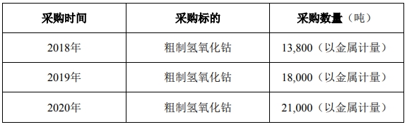 根據(jù)協(xié)議,格林美及三家子公司從2018年到2020年向嘉能可采購的粗制氫氧化鈷分別為13800噸、18000噸、21000噸(金屬當(dāng)量)。如下表。