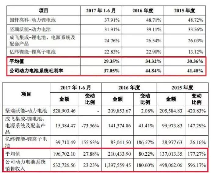 與同行業(yè)上市公司收入和毛利率相比,2015 年、2016 年和 2017年 1-6 月,寧德動(dòng)力電池系統(tǒng)銷售收入分別同比增長(zhǎng) 596.17%、180.60%和23.23%,整體高于同行業(yè)上市公司平均水平,動(dòng)力電池系統(tǒng)毛利率略高于同行業(yè)平均水平。