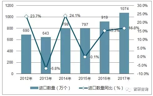 中國儲能網(wǎng)訊:2017年1-12月中國鉛酸蓄電池進(jìn)口數(shù)量為1074萬個,同比增長16.8%;2017年1-12月中國鉛酸蓄電池進(jìn)口金額為325084千美元,同比增長4.9%。2017年1-12月中國鉛酸蓄電池進(jìn)口情況如下圖所示: