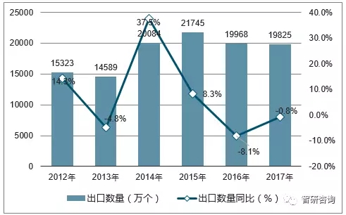 2012-2017年中國鉛酸蓄電池出口數(shù)量統(tǒng)計圖
