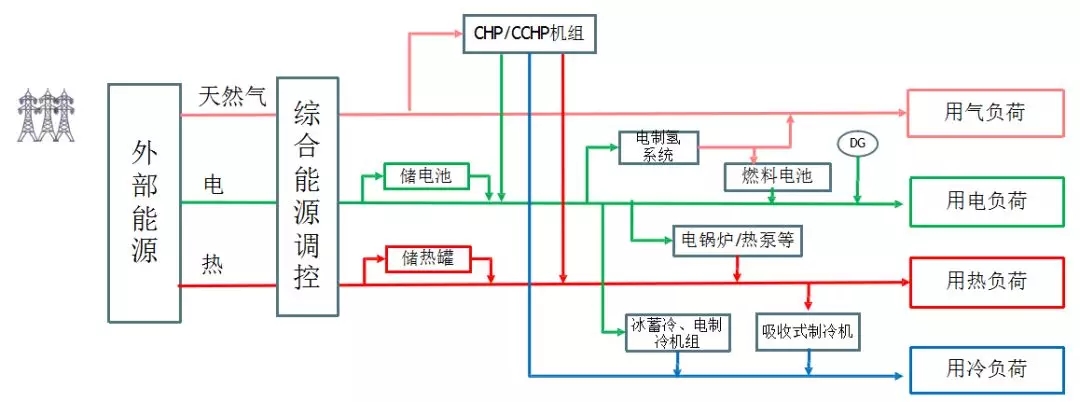 從園區(qū)的能源類型上來(lái)看,可以選擇多種能源供應(yīng),不同能源之間相互轉(zhuǎn)換,有很多能源是通過(guò)電來(lái)驅(qū)動(dòng)的,像冰蓄冷、電制冷機(jī)組等。從園區(qū)的政策或經(jīng)濟(jì)上來(lái)看,可以配備儲(chǔ)能系統(tǒng),像有峰谷電價(jià)的地方可以通過(guò)儲(chǔ)能的方式來(lái)獲取收益。從特點(diǎn)上來(lái)看,用電的形式轉(zhuǎn)化為冷和熱是比較普遍的。