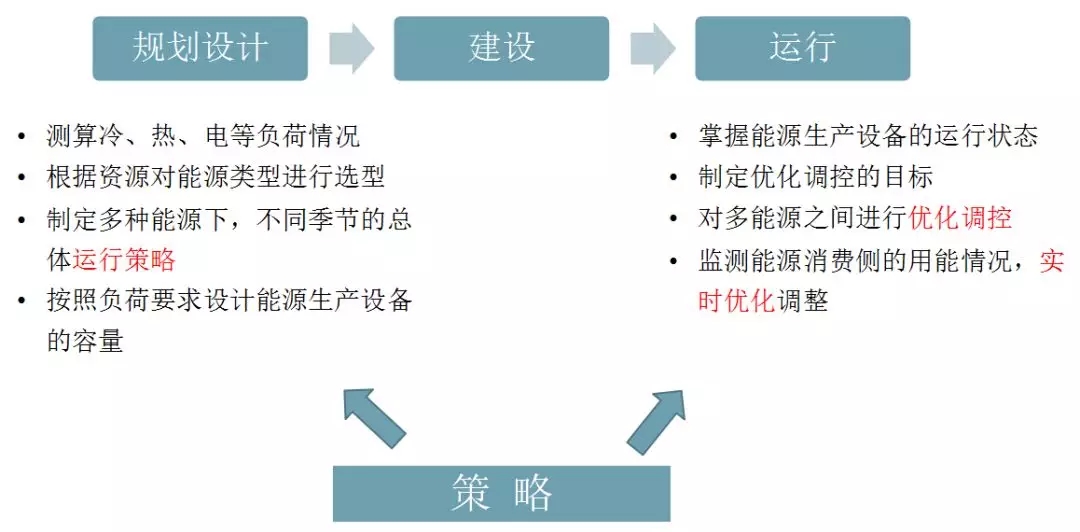個(gè)人認(rèn)為,從廣義上來(lái)講,綜合能源的調(diào)控貫穿多個(gè)環(huán)節(jié),可以把綜合能源整個(gè)的建設(shè)過(guò)程粗略的分為規(guī)劃設(shè)計(jì)、建設(shè)和運(yùn)行,調(diào)控策略不僅在運(yùn)行階段,規(guī)劃設(shè)計(jì)階段也有涉及。
