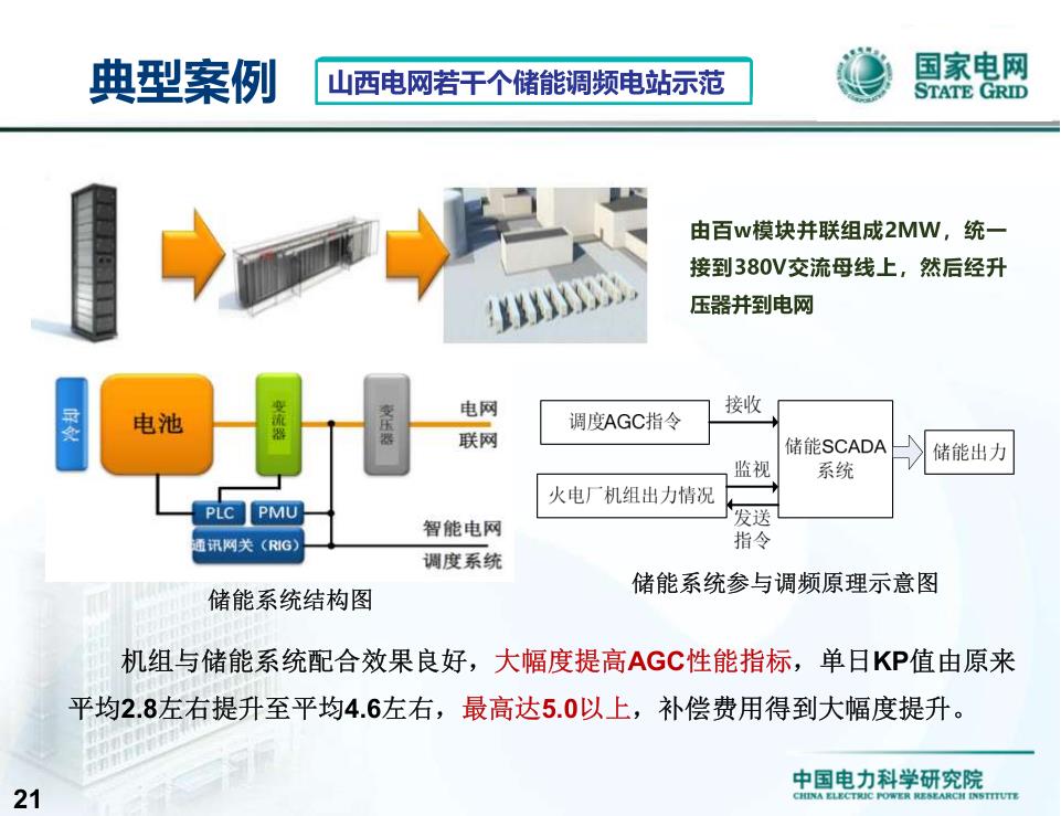 剛才就是調(diào)頻的基本概念和邏輯。下面我介紹幾個(gè)典型的案例。大家知道做調(diào)頻,也不是什么新鮮事物,在國外有好多比如在美國有9MW的調(diào)頻工程,在韓國目前是最大的,有56MW的儲能調(diào)頻,當(dāng)然調(diào)頻是由好幾部分組成的。中國人民做得也可以,在石景山有調(diào)頻電站,KP值也比較高,只不過火電機(jī)組原因現(xiàn)在關(guān)停了,不過這是商業(yè)模式的問題,技術(shù)還是基本可行的。
