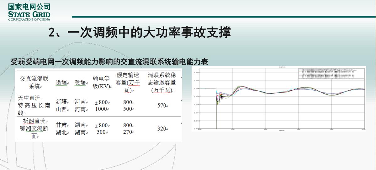 儲能在一次調(diào)頻中的大功率事故支撐:這是基于國標(biāo)的需求做的測算。這是受弱受端電網(wǎng)一次調(diào)頻能力影響的交直流混聯(lián)系統(tǒng)輸電能力表。這個(gè)對電池有一個(gè)非常嚴(yán)苛的要求,投入這個(gè)場景的應(yīng)用儲能系統(tǒng),必須有高可靠性和安全性,需要達(dá)到99.99%。