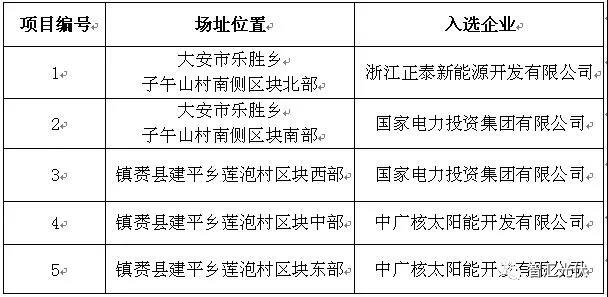根據(jù)壽陽(yáng)光伏發(fā)電應(yīng)用領(lǐng)跑基地優(yōu)選工作方案,壽陽(yáng)縣人民政府組織壽陽(yáng)光伏發(fā)電應(yīng)用領(lǐng)跑基地競(jìng)爭(zhēng)優(yōu)選,現(xiàn)將基地內(nèi)各項(xiàng)目排名第一的推薦投資企業(yè)及主要信息公示如下: