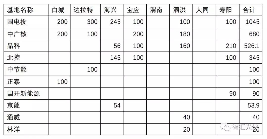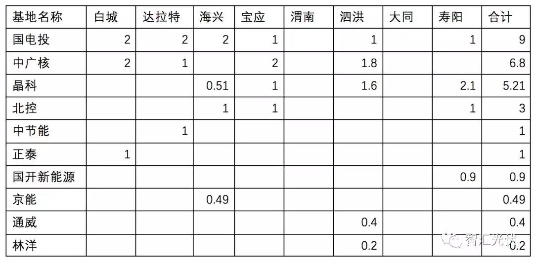 表2:7個(gè)基地各企業(yè)中標(biāo)項(xiàng)目容量匯總
