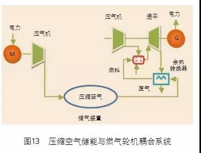 壓縮空氣儲能與燃氣輪機的結(jié)構(gòu)和工作原理類似,可以組合成高效率的耦合系統(tǒng),有效利用壓縮空氣儲能起到削峰平谷的目的(見圖13)。