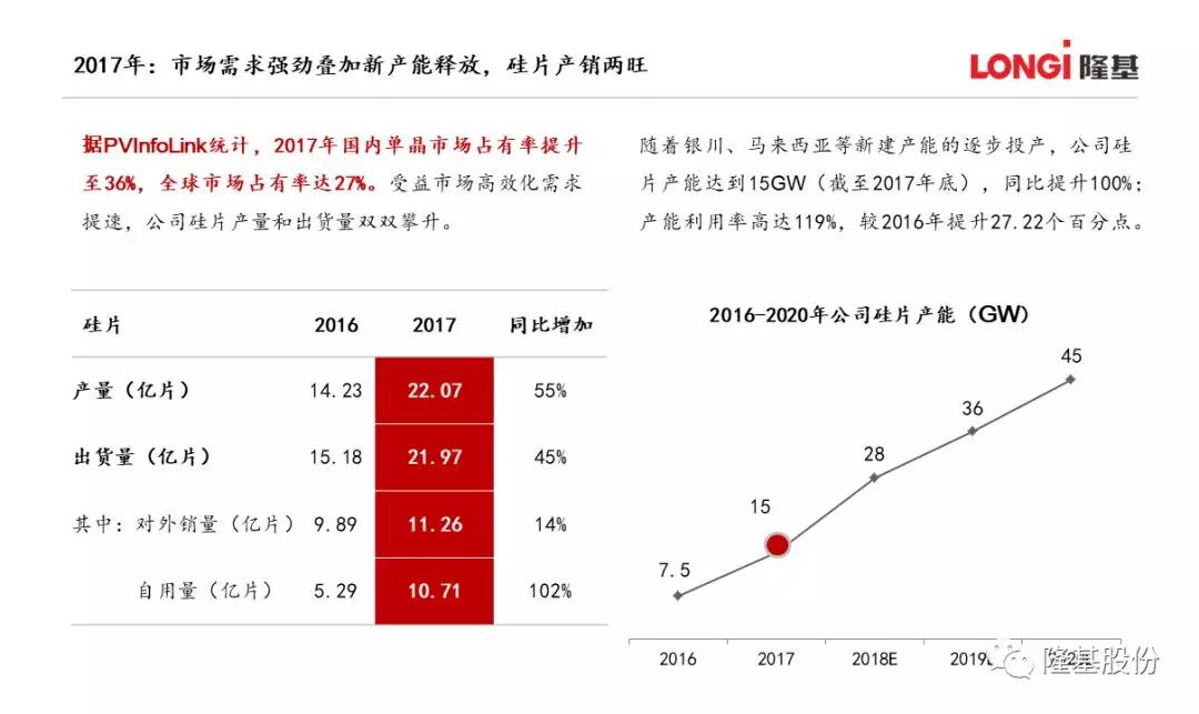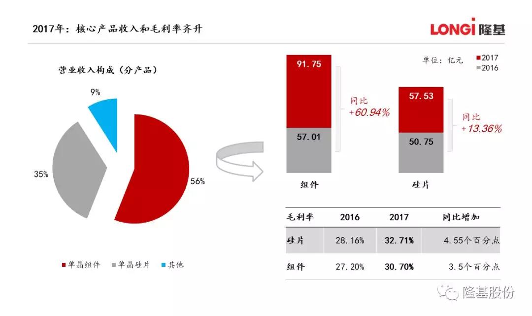 中國儲(chǔ)能網(wǎng)訊:近日,隆基股份發(fā)布2017年度報(bào)告,收入規(guī)模持續(xù)穩(wěn)步增長,經(jīng)營效益再創(chuàng)新高。報(bào)告顯示,隆基股份2017年?duì)I業(yè)收入比上年115.31億元增長41.90%,達(dá)163.62億元。歸屬上市公司股東的凈利潤達(dá)35.65億元,比上年增長130.45%。