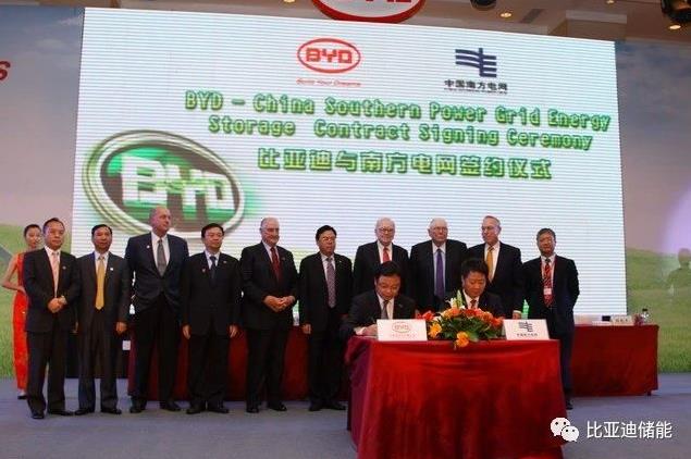 在巴菲特、芒格等貴賓的見證下,比亞迪與中國南方電網(wǎng)MW級(jí)商用電池儲(chǔ)能電站項(xiàng)目成功簽約。
