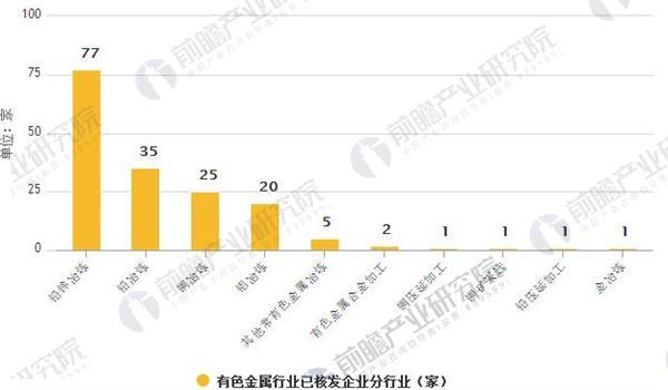 有色金屬行業(yè)已核發(fā)企業(yè)分行業(yè)分布
