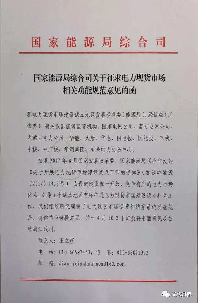 中國儲能網訊:2018年4月17日,國家能源局綜合司下發(fā)《關于征求電力現(xiàn)貨市場相關功能規(guī)范意見的函》,這也許標志著,2018年底前,在8個試點地區(qū),電力現(xiàn)貨市場即將開放!