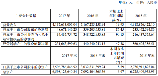 中國儲能網(wǎng)訊:近日,億晶光電發(fā)布了2017年年度報告,報告期內(nèi),公司實現(xiàn)營業(yè)收入413,761.30萬元,較上年同期減少19.93%;營業(yè)利潤4,130.43萬元,較上年同期減少89.47%;歸屬于上市公司股東的凈利潤4,867.11萬元,較上年同期減少86.45%。