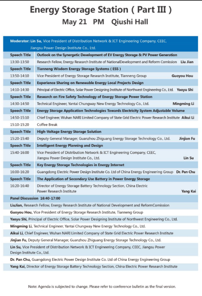 以下為儲(chǔ)能電站專場(三場)大會(huì)議程表。