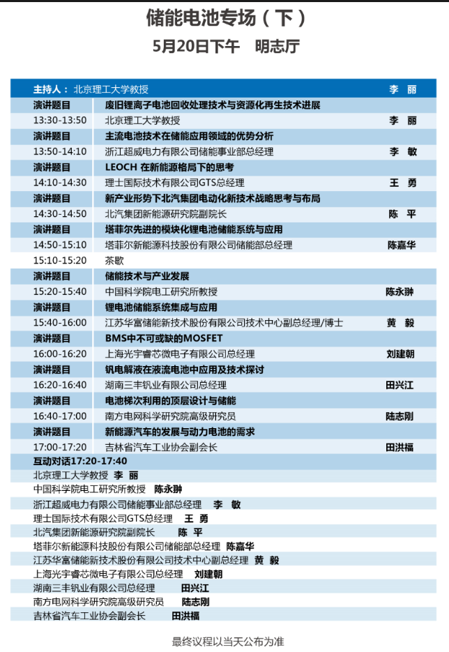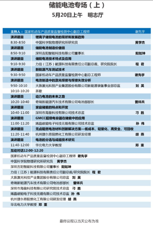 以下為儲(chǔ)能電池專場(chǎng)(二場(chǎng))大會(huì)議程表。
