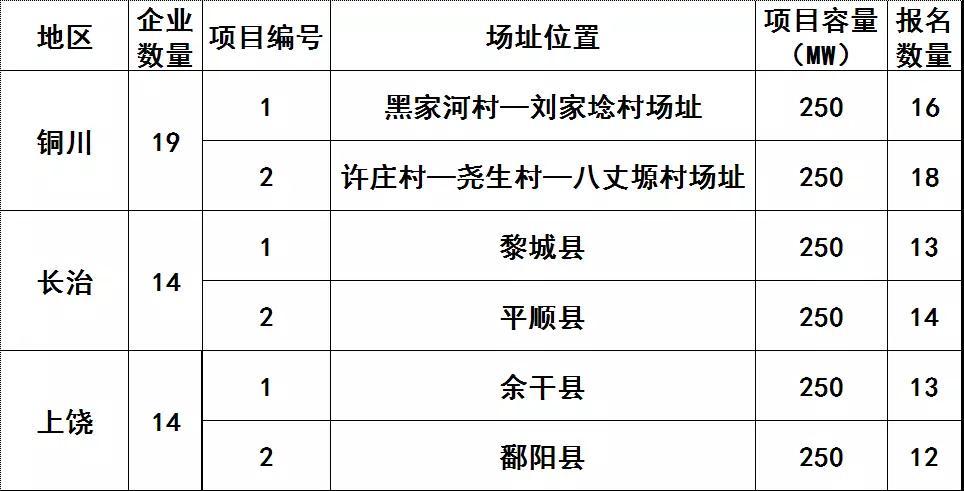 目前,根據(jù)三個(gè)技術(shù)領(lǐng)跑者基地公布的《領(lǐng)跑者基地競爭優(yōu)選工作方案》,上饒基地定位于建設(shè)“光伏發(fā)電先進(jìn)技術(shù)+漁業(yè)養(yǎng)殖觀光旅游”,銅川基地定位“光伏發(fā)電先進(jìn)技術(shù)+高效設(shè)施農(nóng)業(yè)+生態(tài)觀光旅游一體化示范基地”。三個(gè)技術(shù)領(lǐng)跑者基地都已經(jīng)發(fā)布競爭優(yōu)選公告,銅川、長治、上饒三個(gè)基地分別有19、14、14家企業(yè)報(bào)名參與競爭優(yōu)選。