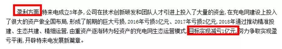 “先定一個小目標,我先掙它一個億!”萬達集團董事長王健林的小目標曾一度刷爆各大朋友圈。近日,“小目標一個億”又再次被提及,只不過這次與進賬無關,更多的是止損。這幾天,特銳德董事長在今年4月中發(fā)布的《給特銳德股東的一封信》成為行業(yè)關注的熱點?!?018年通過推動精準投建、生態(tài)共建、精細運營,由重資產(chǎn)逐漸轉為輕資產(chǎn)的充電網(wǎng)生態(tài)運營模式,目標實現(xiàn)減虧1億元,努力爭取實現(xiàn)盈虧平衡,開辟特來電發(fā)展新篇章。”