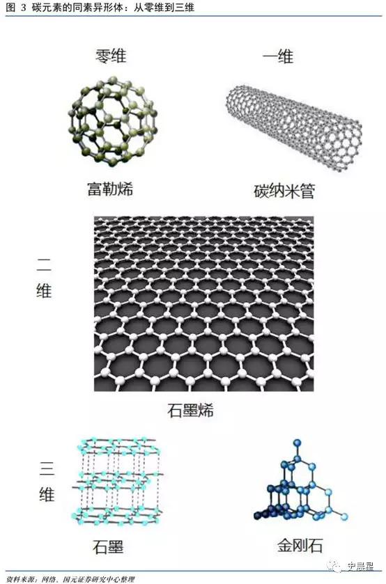 石墨烯是碳的各種形態(tài)中的基本結構,可以從石墨烯成功制備出如富勒烯、碳納米管,彈道晶體管等其他碳素新材料,石墨烯也因此被稱為“碳材料之母”。