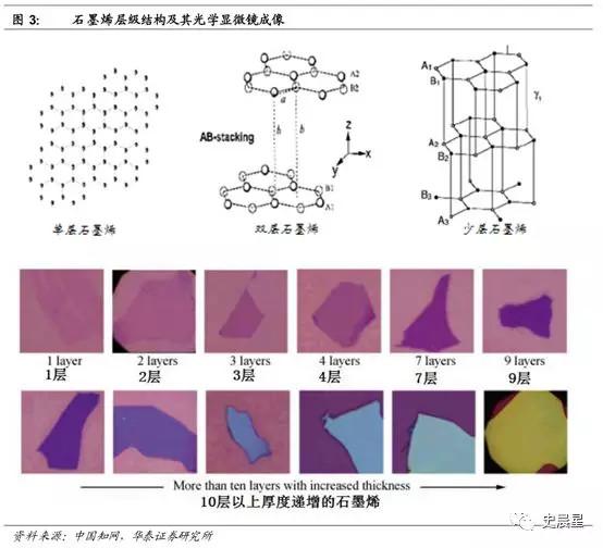 石墨烯按層數(shù)分類,其可分為:單層石墨烯、雙層石墨烯和少層石墨烯。石墨烯層數(shù)超過 10 層后,性質接近薄層體石墨。